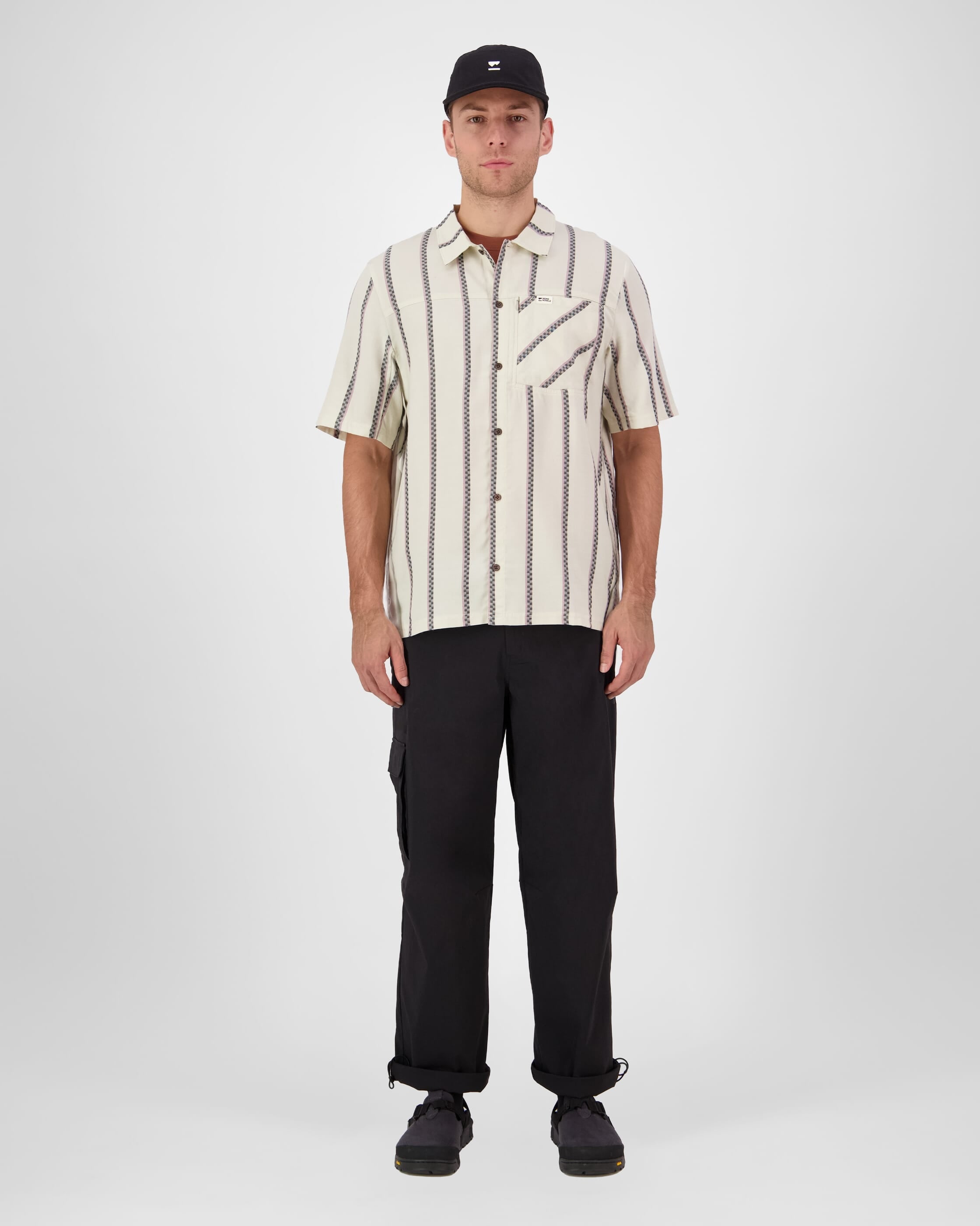 Bypass your clammy cotton shirt and reach for our all-natural blend of Merino Wool and Tencel™. A throwback style in short sleeve that keeps your temp in check, dries fast and never stinks. All day, all night, all mission.